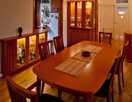 Legyen közel a tálalószekrény, a vitrin, a pohárszék, a komód, de ugyanakkor ne legyen utunkban, és hagyjon helyet a számunkra, amikor felszolgáljuk az ételt, vagy kitöltjük az italokat a poharakba. Járjon könnyen a fiók, essen kézre minden eszköz: kés, villa, kanál, pohár, csésze, és tányér. Csendesség, kényelem, elegancia és otthonosság egyszerre legyen sajátja az étkező bútorainak.
